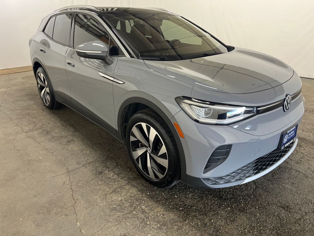 2021 Volkswagen ID.4 Pro S Moonstone Gray AWD Electric Motor Single-Speed Automatic Showroom Sales Open!!, 3.90 Axle Ratio, 4 Wheel Independent Suspension, 7 Speakers, ABS brakes, Air Conditioning, Alloy wheels, Auto High-beam Headlights, Auto-dimming Rear-View mirror, Automatic temperature control, Black Roof, Brake assist, Bumpers: body-color, Delay-off headlights, Driver door bin, Driver vanity mirror, Driver's Seat Mounted Armrest, Dual front impact airbags, Dual front side impact airbags, Electronic Stability Control, Emergency communication system: VW Car-Net services (capabilities require enrollment or subscription), EV Roadside Assistance Kit, Exterior Parking Camera Rear, First Aid Kit, Four wheel independent suspension, Front anti-roll bar, Front Bucket Seats, Front dual zone A/C, Front fog lights, Front reading lights, Fully automatic headlights, Gradient Package, Heated door mirrors, Heated Front Seats, Heated front seats, Heated steering wheel, Heavy Duty Trunk Liner w/VW CarGo Blocks, ID.4 Protection Package, Illuminated entry, Low tire pressure warning, Memory seat, Navigation System, Occupant sensing airbag, Outside temperature display, Overhead airbag, Overhead console, Panic alarm, Passenger door bin, Passenger seat mounted armrest, Passenger vanity mirror, Perforated V-Tex Leatherette Seating Surfaces, Power door mirrors, Power driver seat, Power Liftgate, Power passenger seat, Power steering, Power windows, Radio data system, Radio: Discover Pro Max w/12" Touchscreen Nav, Rain sensing wipers, Rear anti-roll bar, Rear reading lights, Rear seat center armrest, Rear window defroster, Rear window wiper, Remote keyless entry, Roof rack: rails only, Rubber Mats Kit (Set of 4), Silver Accents on Front & Rear Bumpers, Speed control, Speed-sensing steering, Split folding rear seat, Spoiler, Steering wheel mounted audio controls, Telescoping steering wheel, Tilt steering wheel, Traction control, Trip computer, Turn signal indicator mirrors, Variably intermittent wipers, Wheels: 19" 5-Spoke 2-Tone Machined Alloy, Wheels: 20" Dynamic Design Machined Alloy.