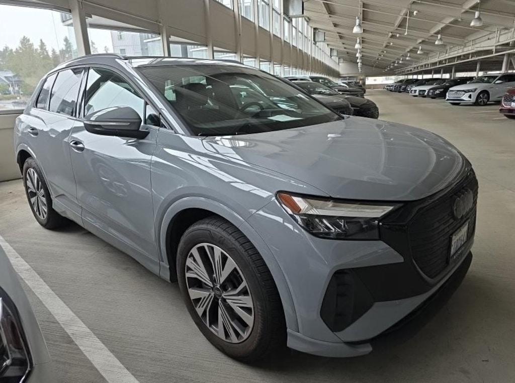 2025 Audi Q4 e-tron Premium Pebble Gray RWD Electric Motor Single-Speed Automatic Showroom Sales Open!!, 8 Speakers, ABS brakes, Air Conditioning, Alloy wheels, Auto High-beam Headlights, Automatic temperature control, Brake assist, Bumpers: body-color, Delay-off headlights, Driver door bin, Driver vanity mirror, Dual front impact airbags, Dual front side impact airbags, Electronic Stability Control, Emergency communication system: Audi connect CARE (limited time subscription - acceptance of terms required), Exterior Parking Camera Rear, Four wheel independent suspension, Front anti-roll bar, Front Bucket Seats, Front Center Armrest, Front dual zone A/C, Front reading lights, Fully automatic headlights, Genuine wood dashboard insert, Heated door mirrors, Heated Front Seats, Heated front seats, Illuminated entry, Leather Seating Surfaces, Leather steering wheel, Low tire pressure warning, Navigation system: MMI Navigation plus, Occupant sensing airbag, Outside temperature display, Overhead airbag, Overhead console, Panic alarm, Passenger door bin, Passenger vanity mirror, Power door mirrors, Power driver seat, Power Liftgate, Power moonroof: Panoramic, Power steering, Power windows, Radio data system, Radio: Audi Sound System, Rain sensing wipers, Rear air conditioning, Rear anti-roll bar, Rear reading lights, Rear seat center armrest, Rear window defroster, Rear window wiper, Remote keyless entry, Security system, Speed control, Speed-sensing steering, Split folding rear seat, Spoiler, Steering wheel mounted audio controls, Telescoping steering wheel, Tilt steering wheel, Traction control, Trip computer, Turn signal indicator mirrors, Variably intermittent wipers, Wheels: 19" 5-W-Spoke Aero Design.